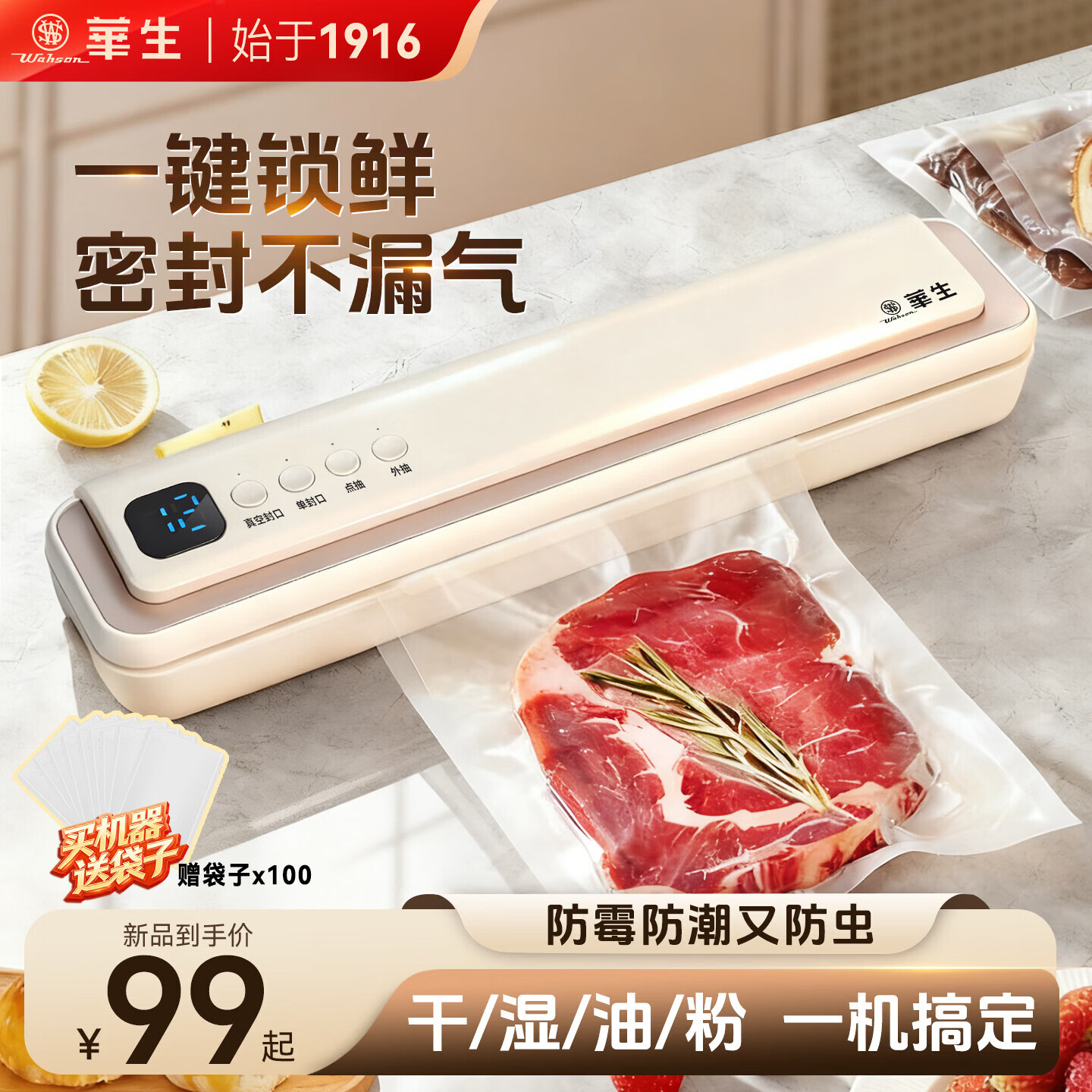 华生【抖音同款】真空封口机家用小型真空包装机食品塑封机全自动真空机干湿两用商用真空保鲜打包机