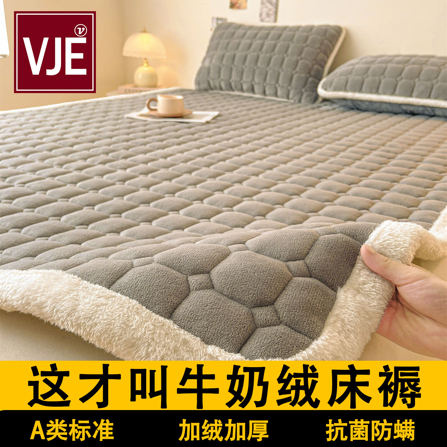 VJEA类牛奶绒夹棉床垫床褥家用卧室软垫150x200cm床褥子垫被保暖冬季 牛奶绒床褥-深空灰【加厚款】 单床褥90*200cm【适合0.9m床】
