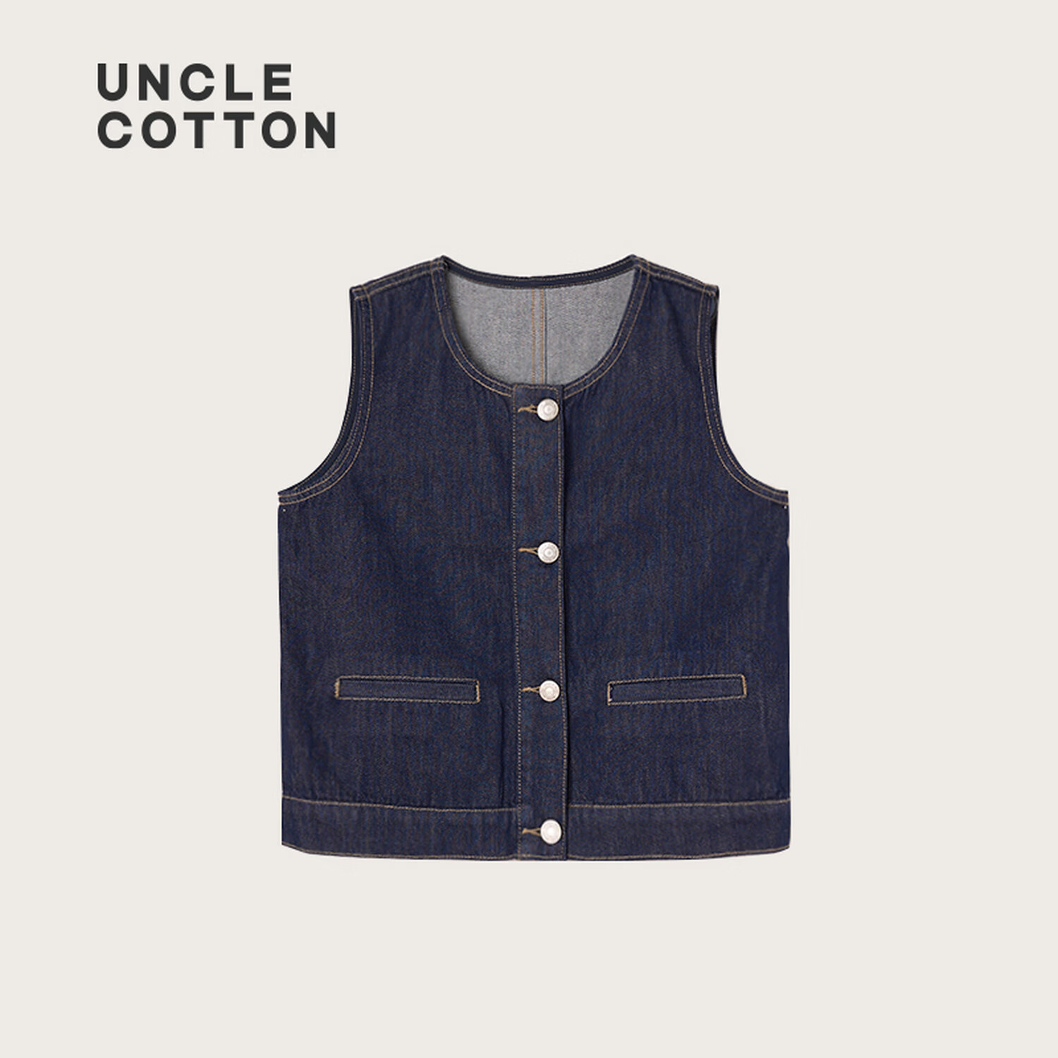 棉叔叔【不易落色马甲】棉叔叔儿童春夏时尚马甲男童女童牛仔马甲3.18 深色牛仔 130 130