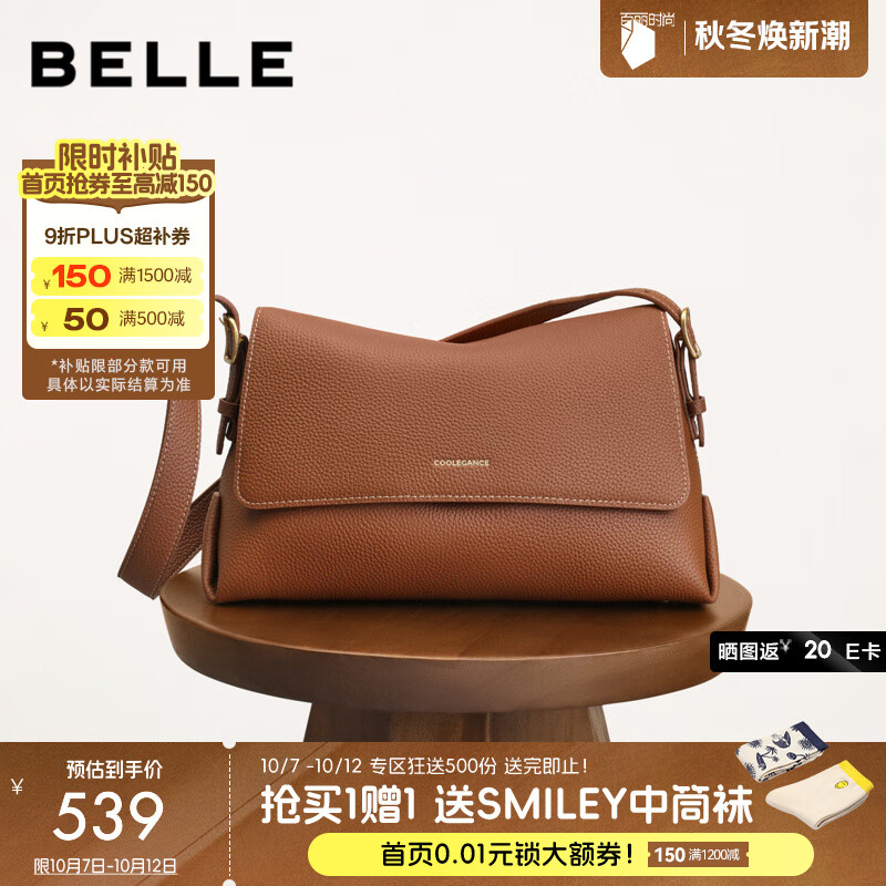 百丽包包女2025新商场同款牛皮质感通勤单肩小方包M8605DX5 棕色 F