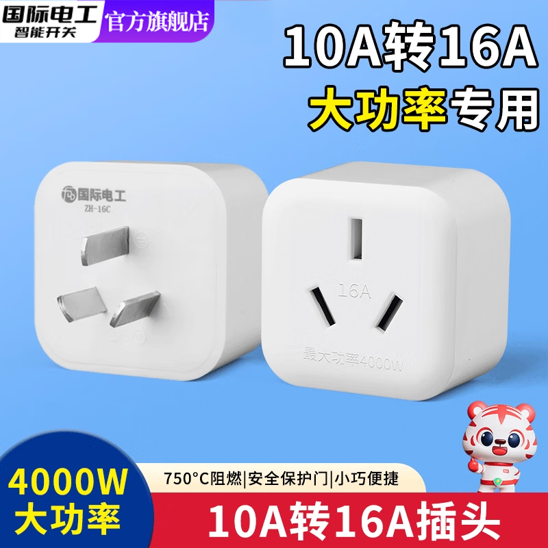 国际电工空调插座16A转换头热水器一分二10A和16安插头转换器三孔无线扩展 10转16A三孔(4000W大功率)