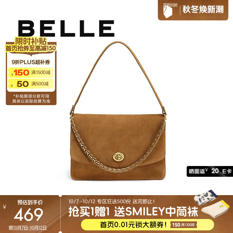 百丽包女2025秋新品复古绒牛质感邮差包单肩小方包X7371CX5 棕色 F