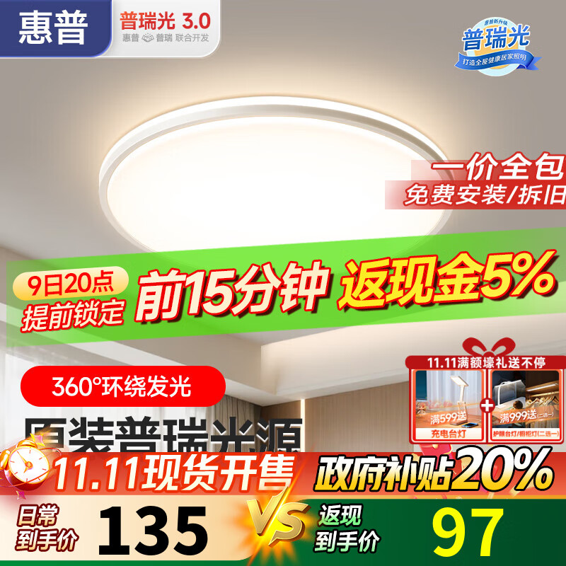 惠普大气吸顶灯现代简约客厅灯家用高亮护眼主灯led中山灯具套餐 40W 15㎡内适用 40cm圆形-三色变光