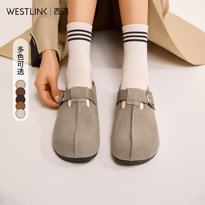 西遇(Westlink)一脚蹬勃肯鞋半拖女2025新款秋季包头拖鞋增高厚底吐司鞋 杏色(K0057160) (35/9预售10月11日) 37 (235)
