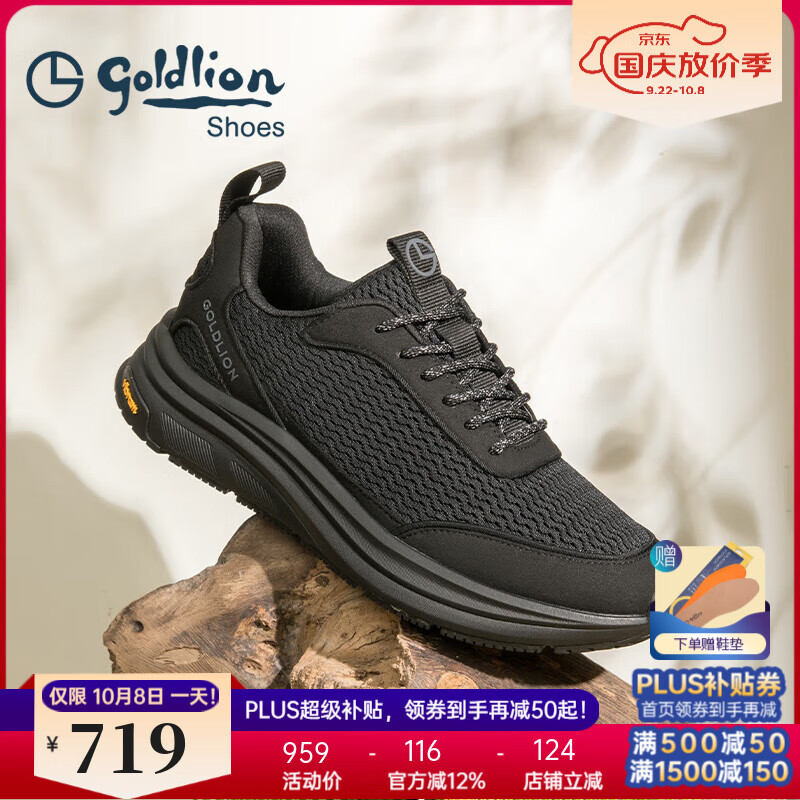 金利来(Goldlion)霸霸鞋男鞋25年秋新品网面休闲鞋男厚底软弹运动鞋跑步老爹鞋 黑色 42