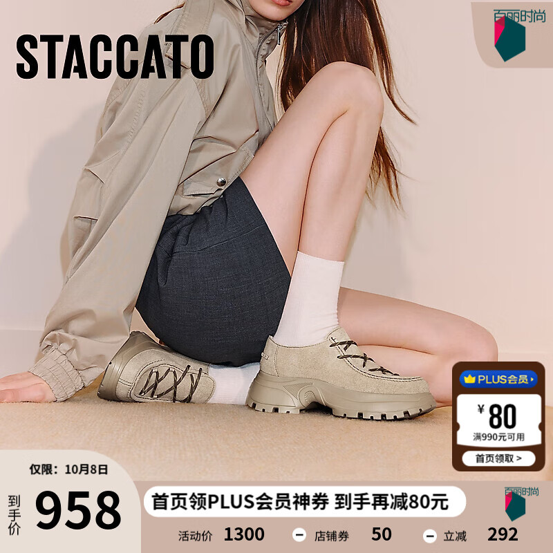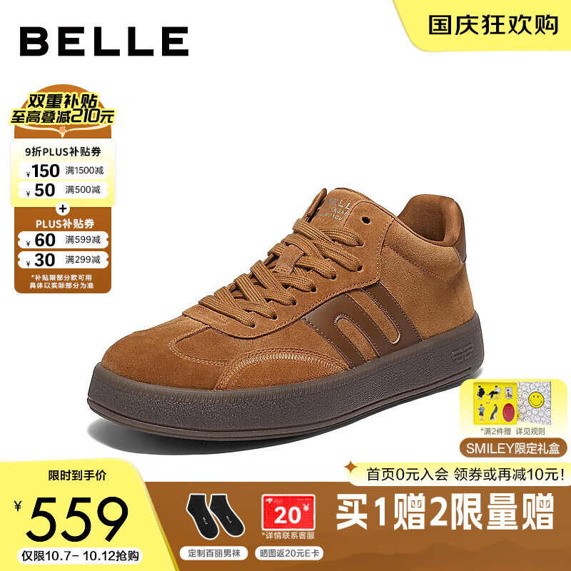 百丽(Belle)张凌赫同款绒面跑道德训鞋女25秋新双鞋带厚底休闲鞋B2897CM5 红色 36