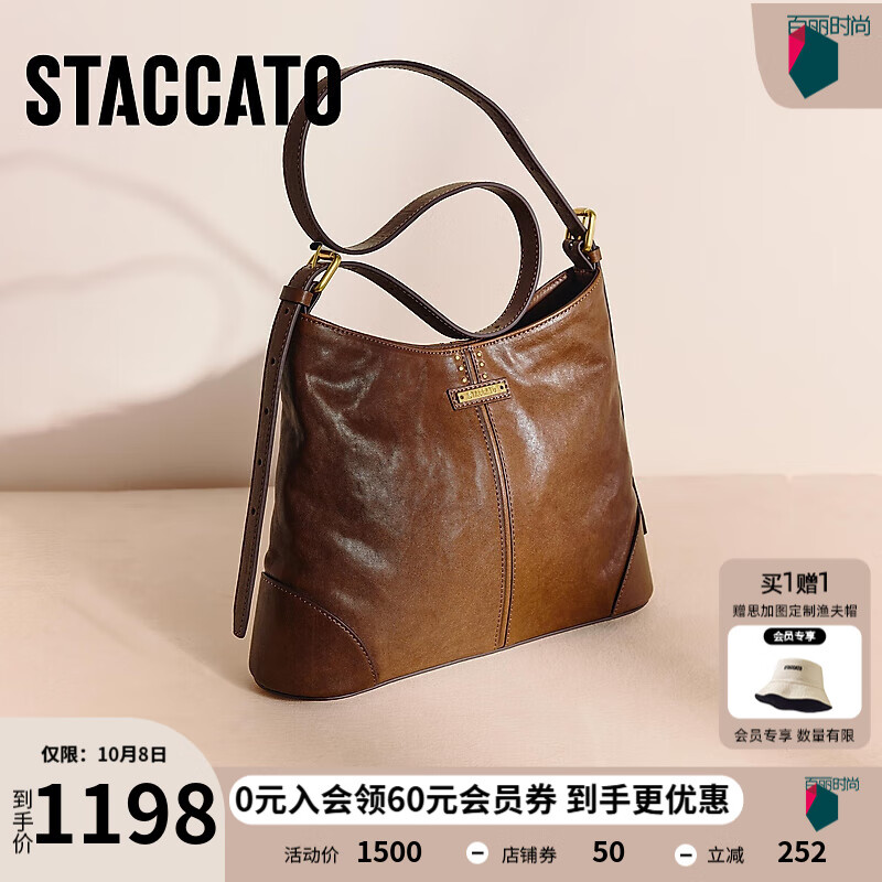 思加图2025秋季新款旧书签托特包大容量单肩包时尚背提包X8252CX5 复古啡 F