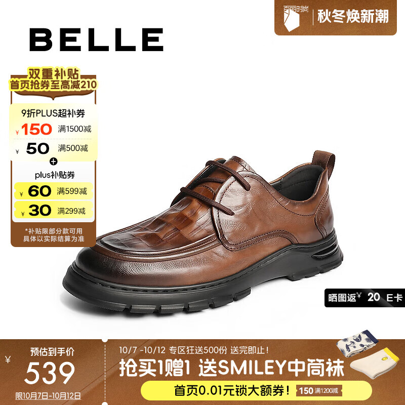 百丽(Belle)质感商务鞋男2025秋季新款厚底爸爸鞋休闲皮鞋A2046CM5 棕色 43 (265mm)