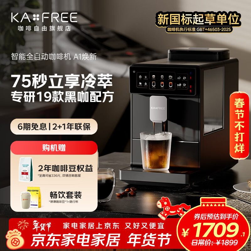 咖啡自由(KAxFREE)A1焕新全自动智能咖啡机研磨一体家用意式美式冷萃咖啡机 墨黑