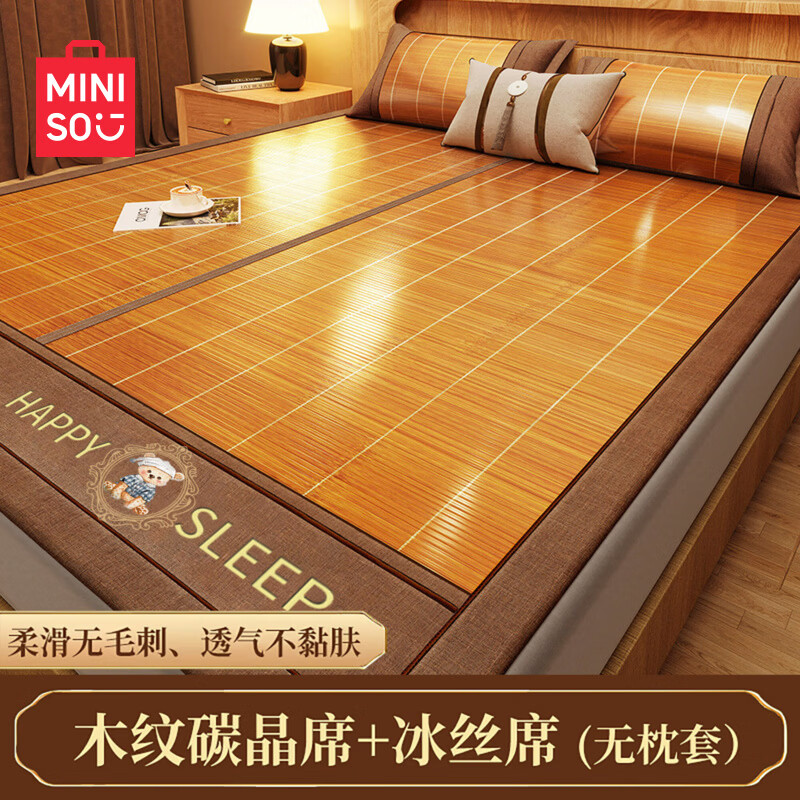 名创优品(MINISO)夏季竹席凉席1.8x2米 夏凉席冰藤席单双人冰丝席空调席子 小熊波比【单竹席】 180cm*200cm