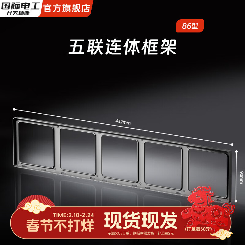 国际电工86型超薄肤感家用开关面板连体接线盒二联框架边框插座底盒修复器 五位连体框(星空灰)