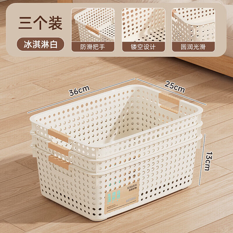 稻草熊(DOCOXO)杂物收纳篮桌面化妆品零食玩具文件整理收纳篮筐床边储物整理筐 冰激凌白特大号【3个装】
