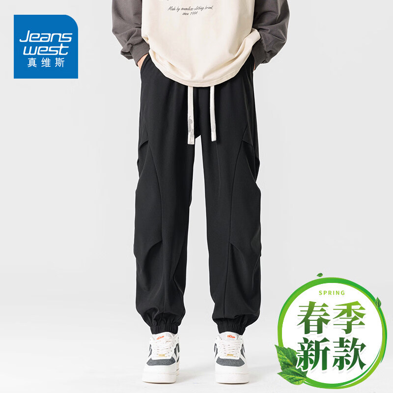 真维斯(Jeanswest)宽松束脚裤男2026春季新款青春活力风立体剪裁潮牌休闲长裤 黑色 【美式复古】 M 【建议90-110斤】