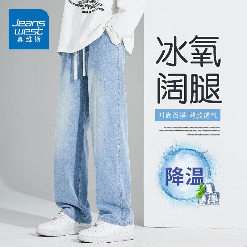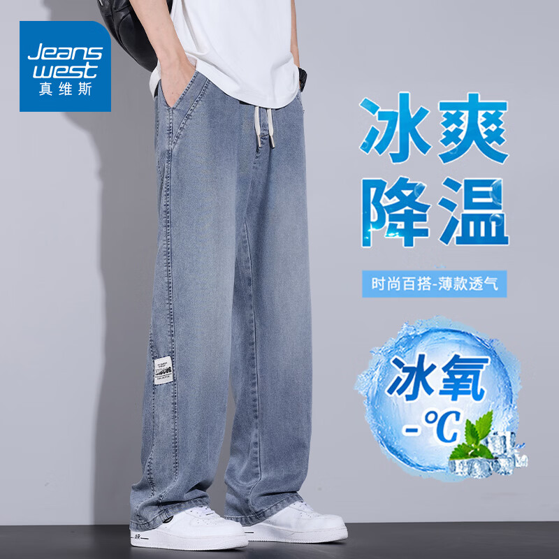 真维斯冰丝牛仔裤男春夏季2026新款潮流美式宽松薄款直筒休闲长裤子 浅蓝 M