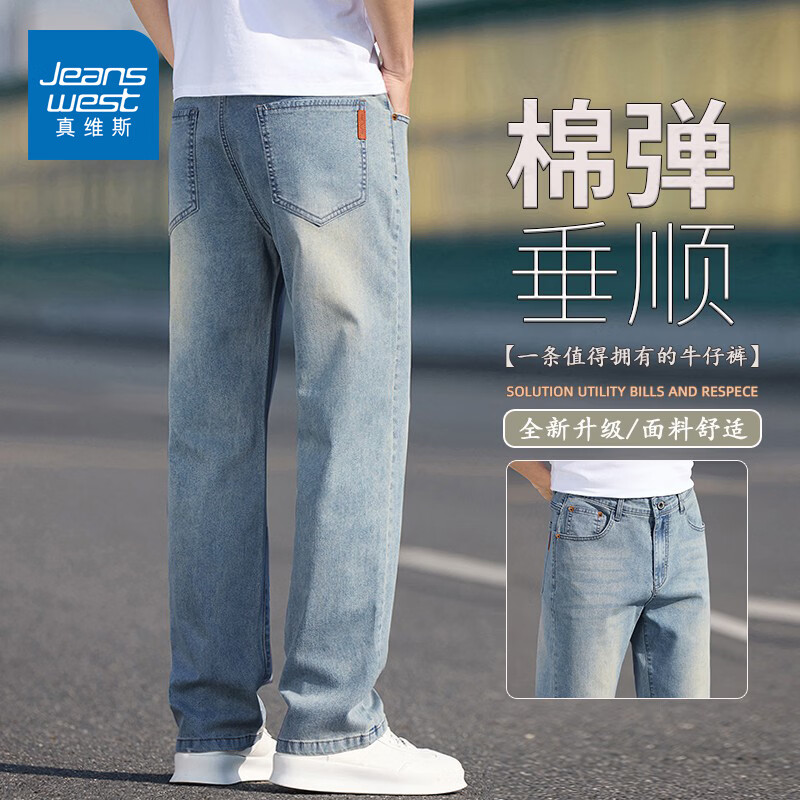 真维斯(Jeanswest)2026春秋潮牌复古牛仔裤男士春季高端百搭垂感休闲裤宽松直筒长裤 浅蓝色 S