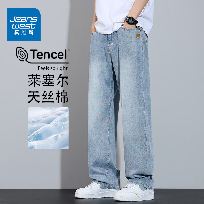 真维斯简约牛仔裤男士春秋高端宽松直筒天丝莱赛尔阔腿裤子男款 浅蓝 28