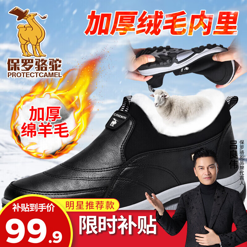 保罗骆驼运动休闲鞋 加绒加厚保暖男鞋子 2026秋冬季轻便防滑一脚蹬 【黑色】 3351 39 【标准运动鞋码】