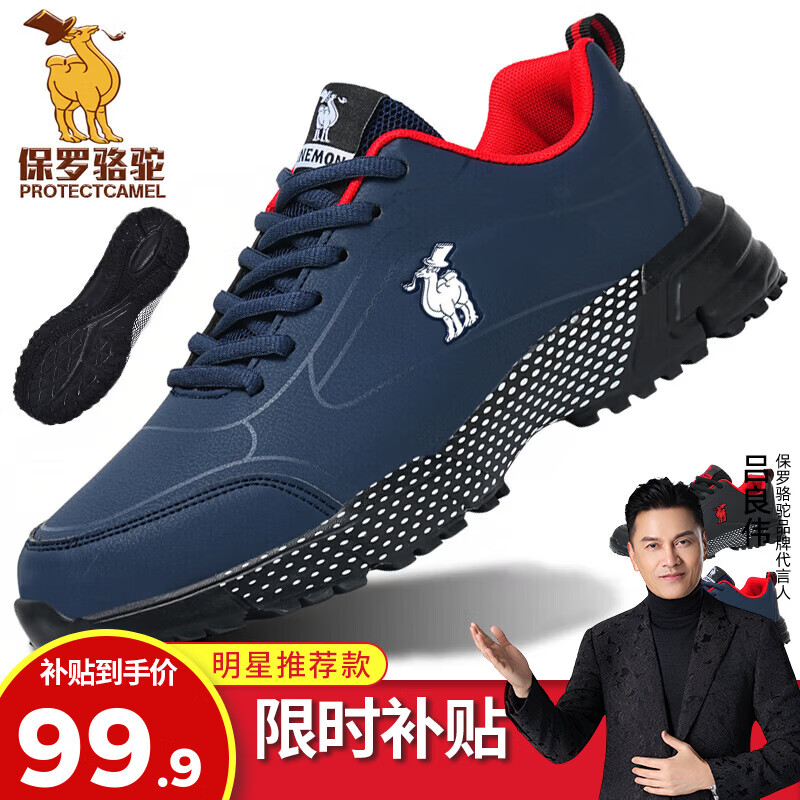 保罗骆驼男鞋 2026新款透气软底休闲跑步鞋男 防滑耐磨慢跑休闲鞋子 【深蓝】 QZ8812-2 39 【标准运动鞋码】