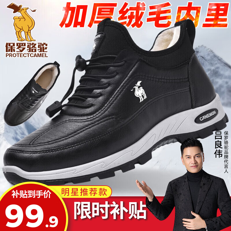保罗骆驼运动休闲鞋 加厚加绒保暖男鞋子 2026秋冬季防滑轻便大码户 【加绒款】黑色 LY26121 39 【标准运动鞋码】