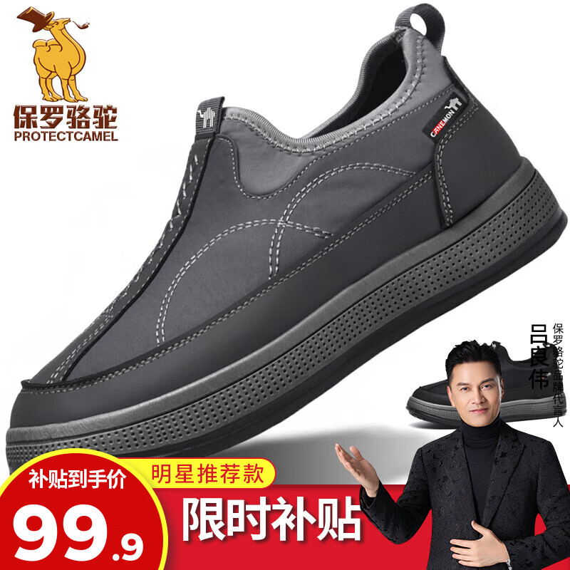 保罗骆驼男鞋 2026新款春夏轻便防滑一脚蹬休闲鞋 男士大码运动懒人 【四季款】灰色 225 39 【标准运动鞋码】