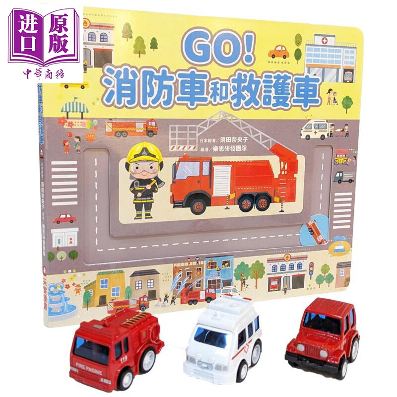 预售 轨道游戏书 GO 消防车和救护车 附3台合金模型回力车 港台原版 儿童玩具书 主题式场景插图+趣味轨道游戏设计