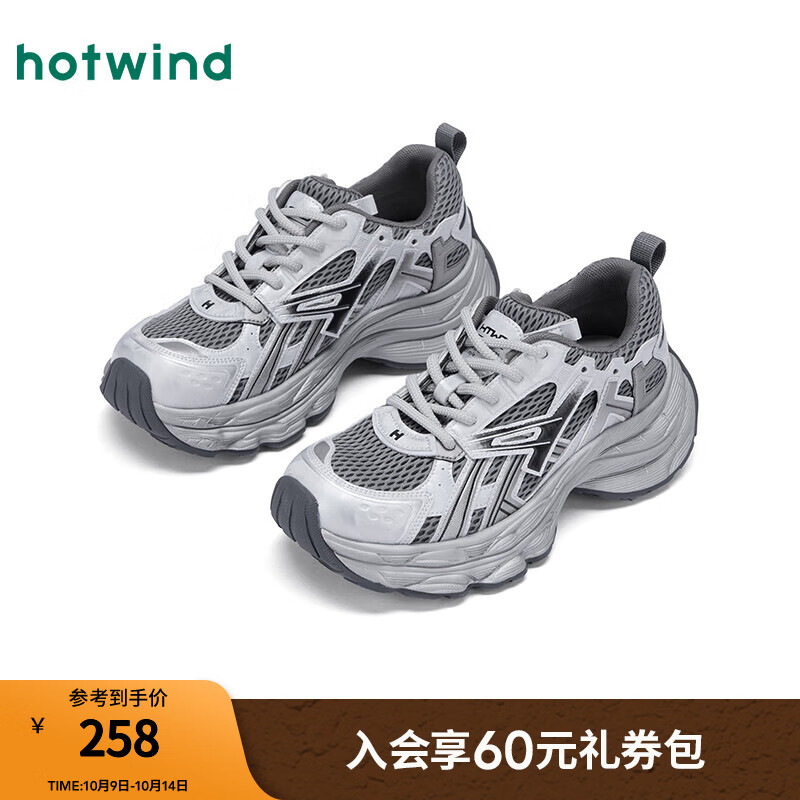 热风(Hotwind)女鞋增高厚底老爹鞋2025年冬季新款女士复古时尚休闲户外运动鞋女 115银灰 37