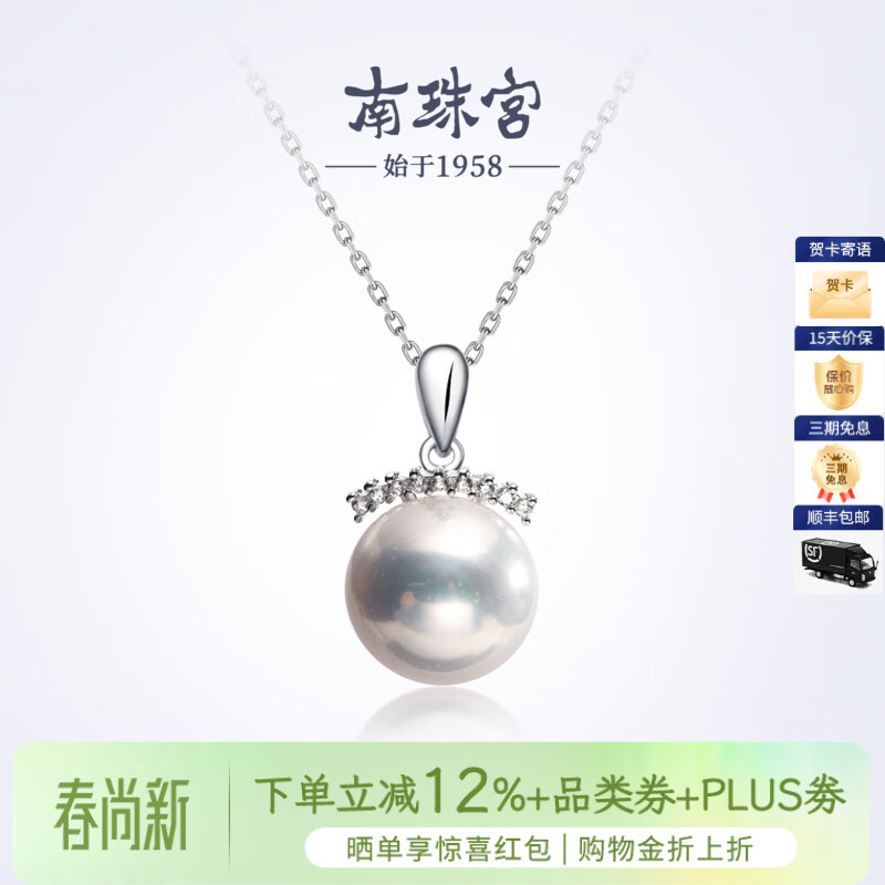 南珠宫云檐925银淡水珍珠吊坠日常百搭年轻款情人节礼物送女友 银色款 11.0-12.0mm