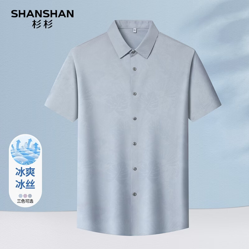 SHANSHAN杉杉短袖衬衫男2026夏季新款上班通勤休闲日常双面印花翻领POLO衫 浅灰色 M /170