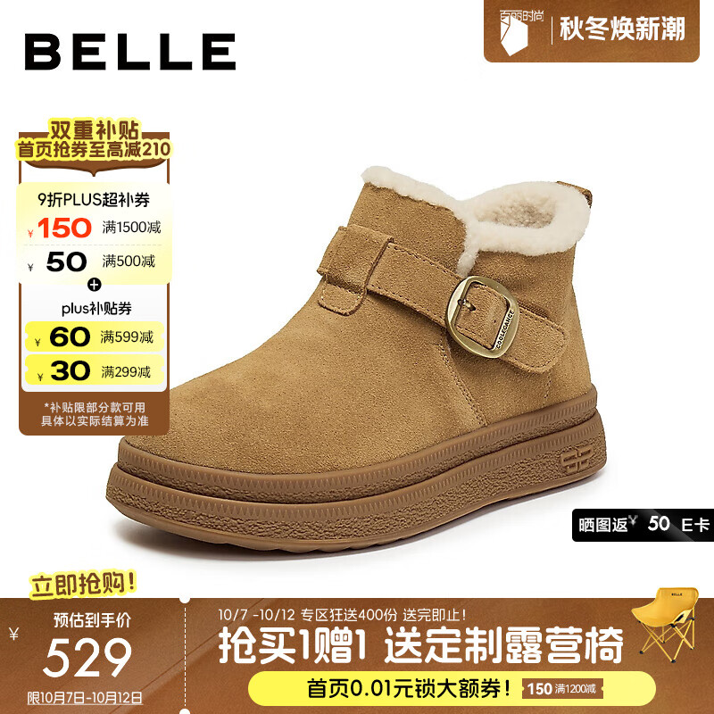 百丽(Belle)复古皮带扣雪地靴女2025冬新商场同款厚底加保暖短靴E4K1DDD5 棕色 37