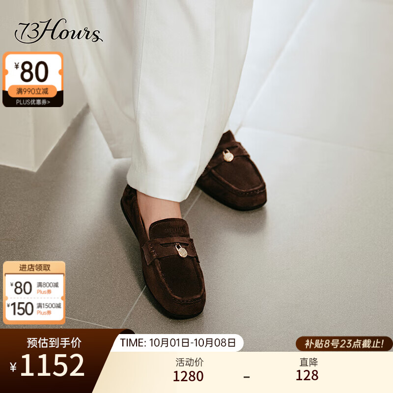 73Hours女鞋Pancake2025秋季新款老钱风羊皮乐福鞋女一脚蹬豆豆鞋 咖色 37