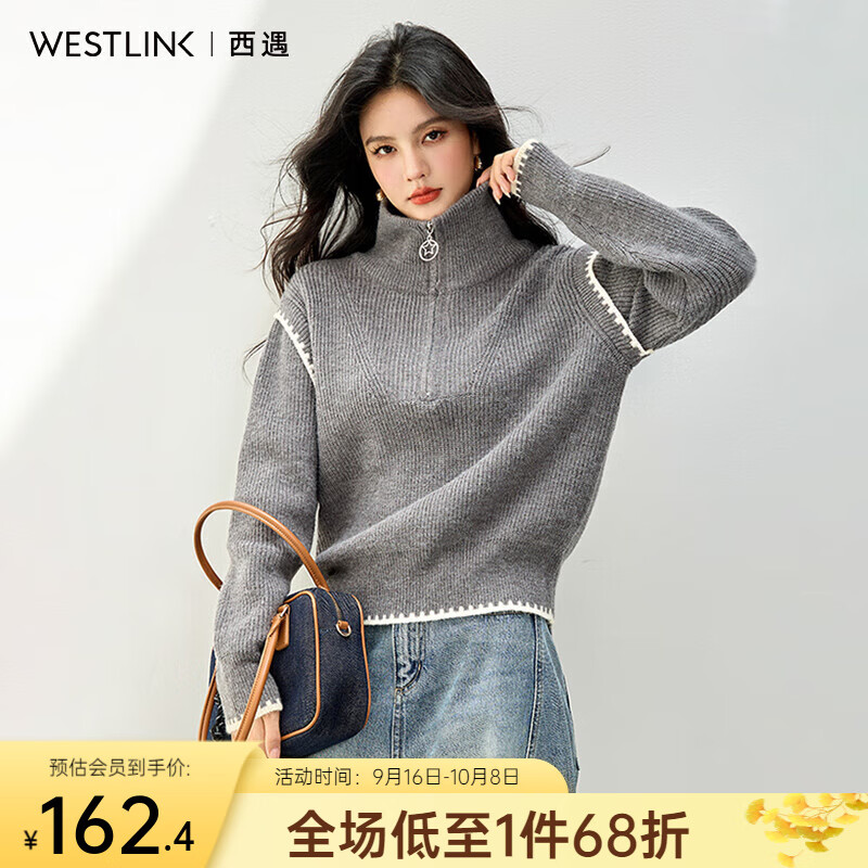 西遇(Westlink)西遇灰色高领宽松毛衣女2025年秋季新款慵懒拉链拼接长袖针织衫 灰色 (预售15天) M (160)