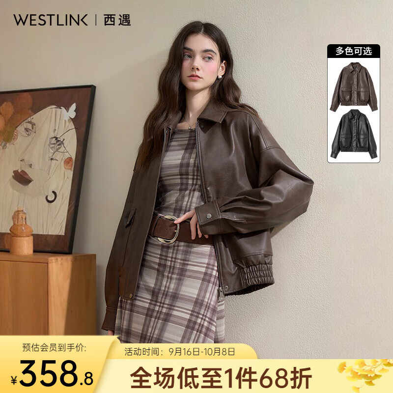 西遇复古休闲摩登质感pu皮夹克外套女2025秋季宽松廓形显瘦机车服 咖色 (预售10月20日) M (160)
