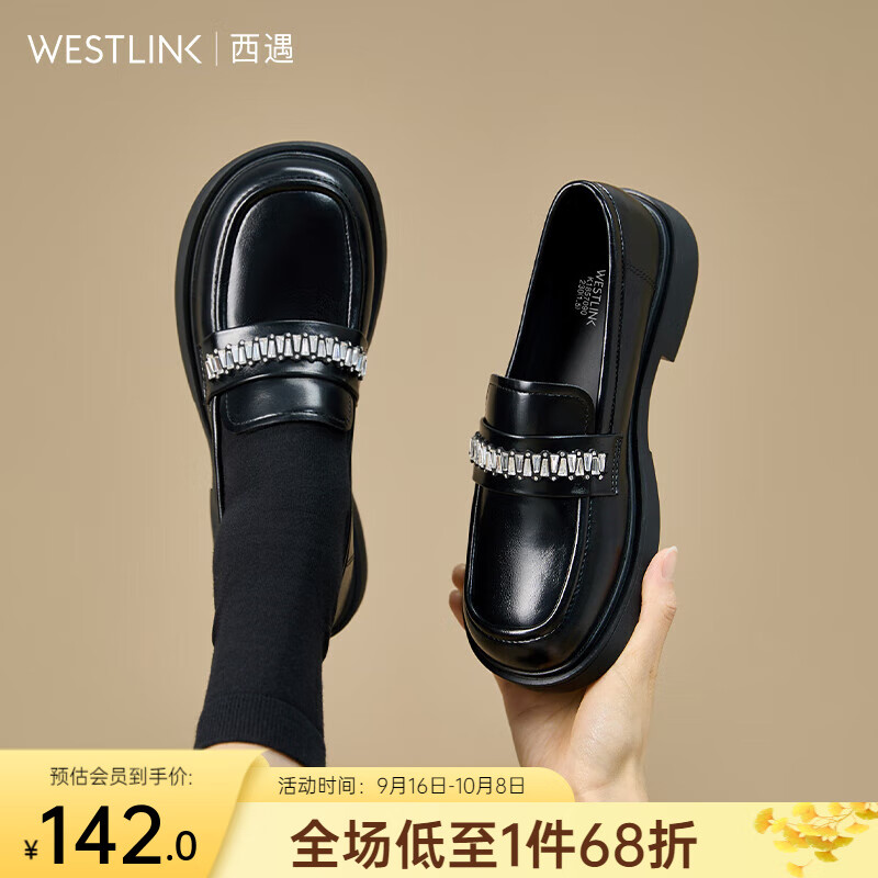 西遇(Westlink)黑色乐福鞋女2025新款秋季百搭一脚蹬通勤单鞋软底低跟小皮鞋 黑色 37 (235)
