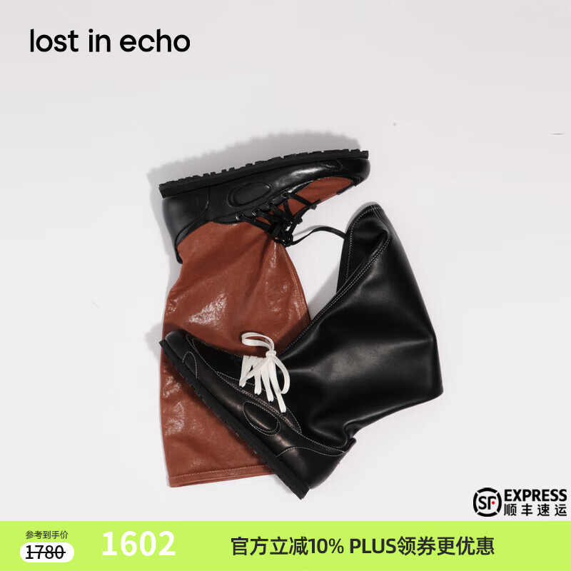 lost in echo2025秋冬新款宽筒显瘦薄底真皮一脚蹬芭蕾舞长筒靴女 黑色 37