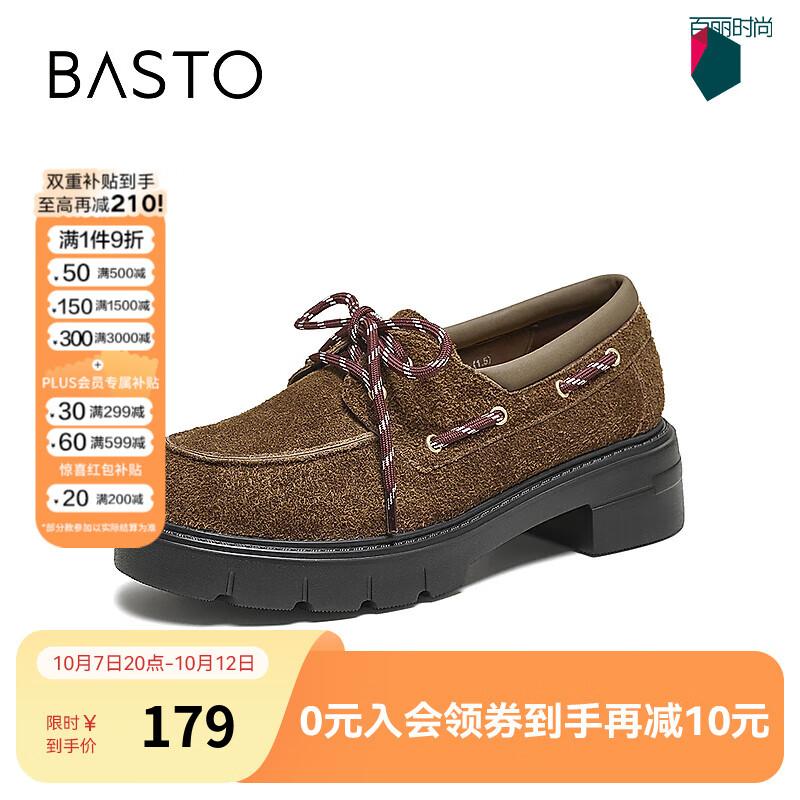 百思图2025秋季新款真皮绒面英伦风牛津鞋皮鞋女深口单鞋UUJ08CA5 深啡 37