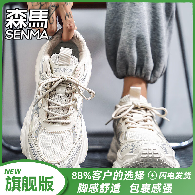 森馬男鞋2026新款夏季网面透气高级感厚底增高男士休闲运动跑步老爹鞋 米灰【旗舰款】 40 标准码数/现货秒发