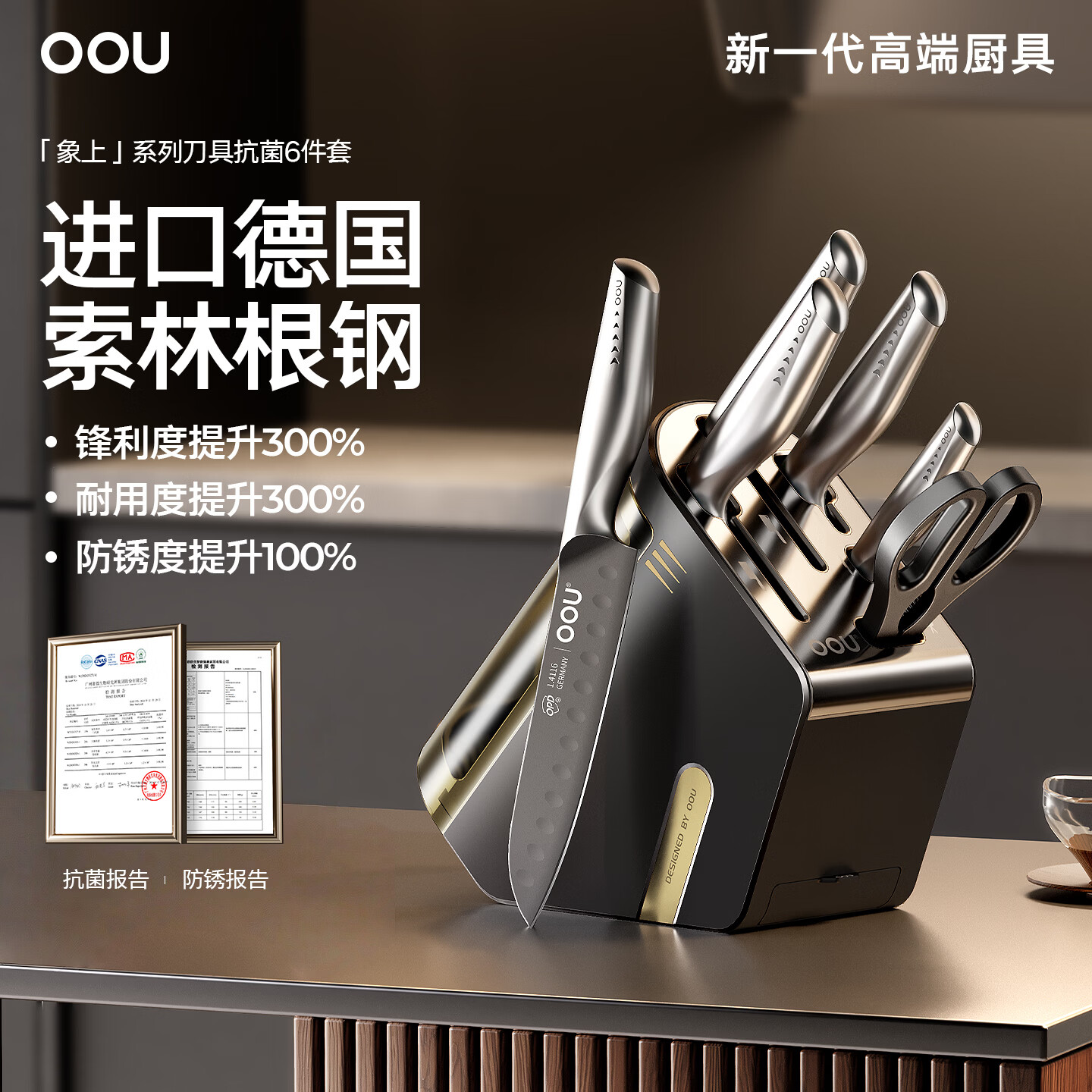 OOU【重磅新品】象上刀具套装家用菜刀厨房砍骨刀锋利全套刀具6件套 天花板级钢材+抗菌升级 |象上银金色
