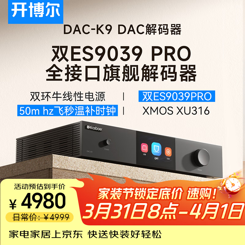 开博尔(Kaiboer)DAC-K9数字音频dac专业音频网络串流台式解码器 双9039Pro前极音频蓝牙dsd无损发烧级hifi播放器
