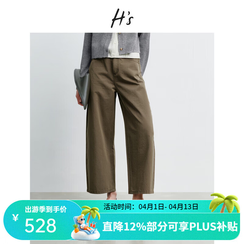 H's咖色全棉九分牛仔裤女26春季新款高级设计感立体宽松廓形弯刀裤 摩卡咖 M