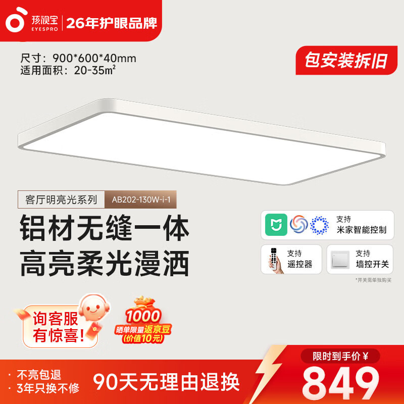 孩视宝明亮光·全光谱护眼吸顶灯智能现代简约无缝客厅主灯书房卧室灯具 130W 35㎡内适用 13390lm 【明亮光客厅】暖白-智能款