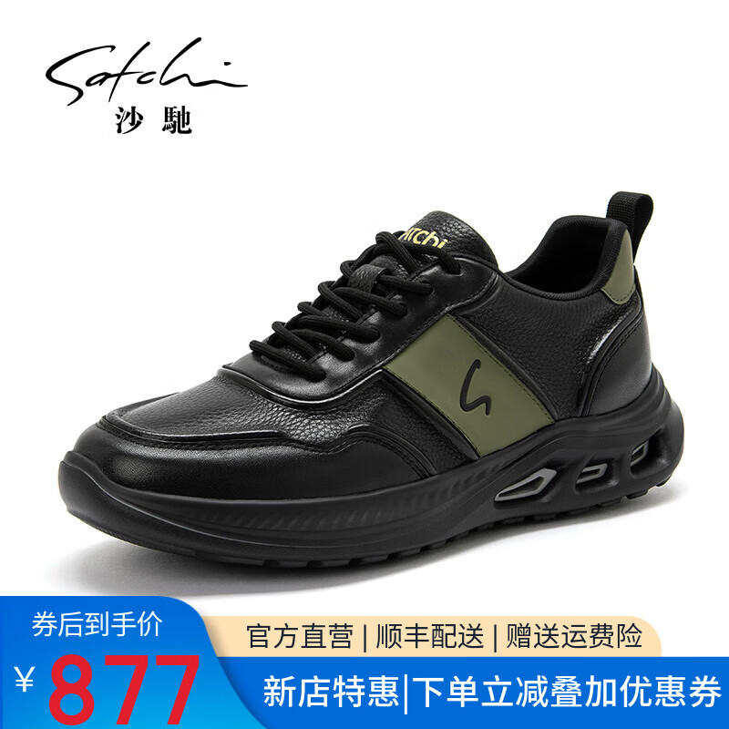 沙驰(SATCHI)男鞋新款牛皮拼接酷感缓震休闲运动鞋厚底潮流跑步鞋老爹鞋板鞋 黑色(1DXVB0130) 43 欧码(选小一码)
