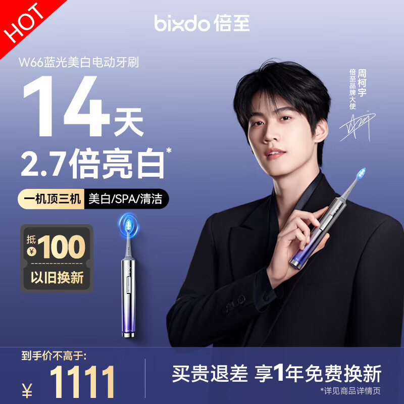 倍至【周柯宇同款】蓝光美白电动牙刷扫振一体成人AI智能W66紫 送情侣女朋友女士专用 生日结婚礼物