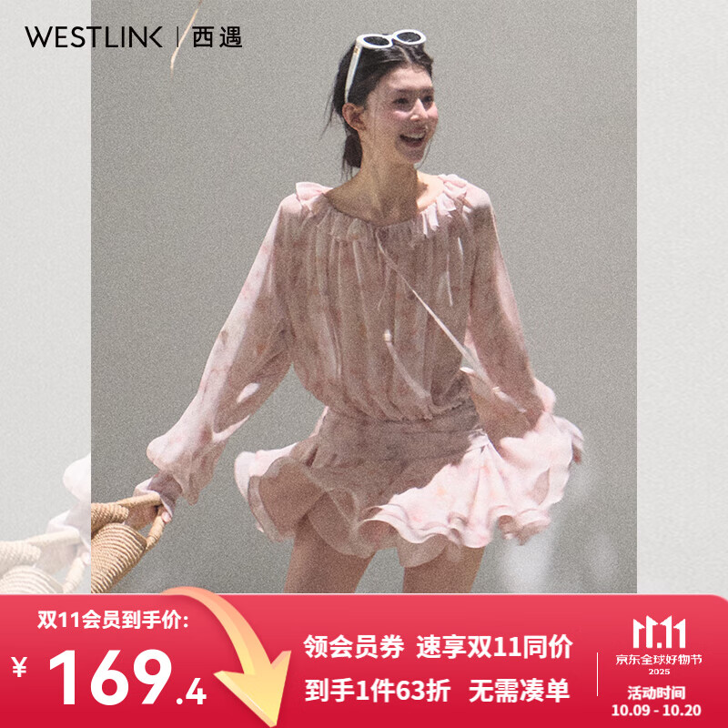 西遇法式收腰连衣裙女2025年秋季新款粉色娃娃领荷叶边短款裙子 粉色 L (165)