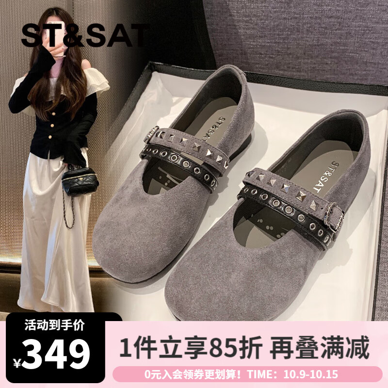 星期六(St&Sat)法式百搭软底勃肯鞋一脚蹬通勤玛丽珍鞋轻奢浅口单鞋JXSSD2111WKY 灰色 36