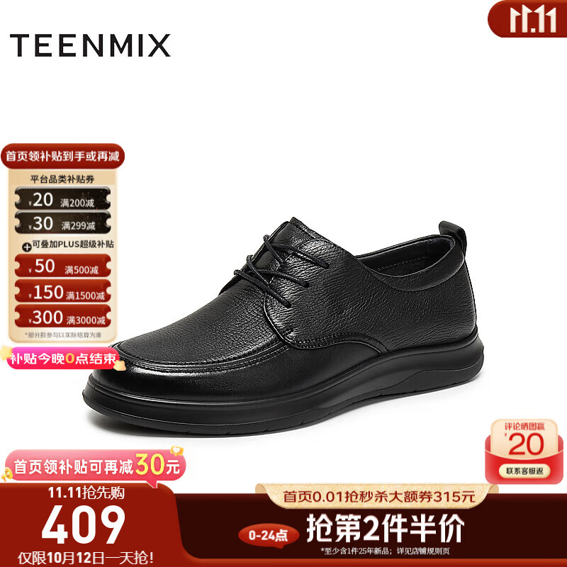 天美意男鞋商场同款复古系带通勤上班男休闲皮鞋2025秋新款3WR02CM5 黑色 44