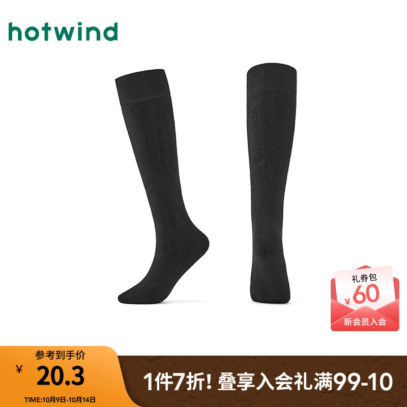 热风(Hotwind)【商场同款】女袜子2025年冬季新款基础加厚毛圈小腿袜显瘦高帮袜 01黑色 1双 均码