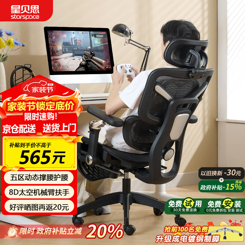 STARSPACE人体工学椅电脑椅护腰久坐学习办公椅子人工力学椅8D扶手五维腰靠