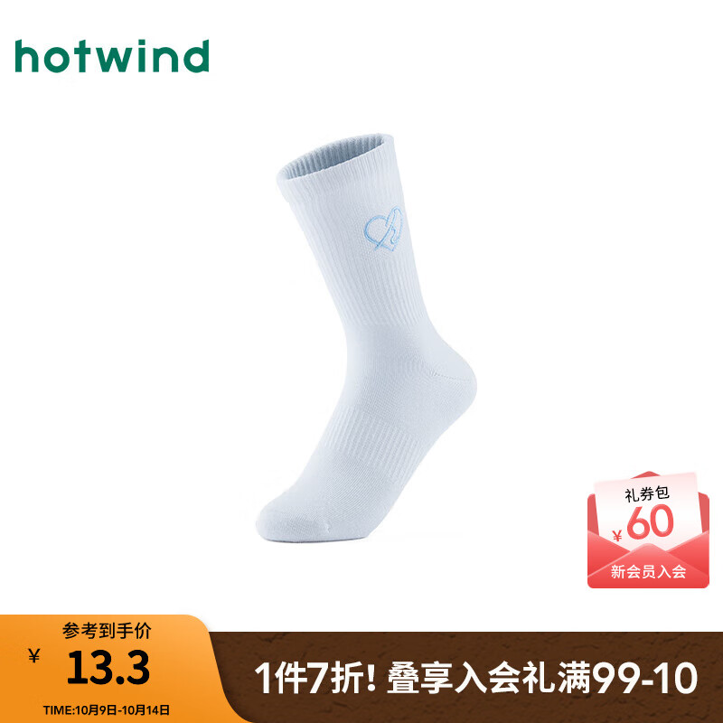 热风(Hotwind)【商场同款】女士高帮袜2025年秋季新款爱心刺绣户外运动袜子 06兰色 1双 均码
