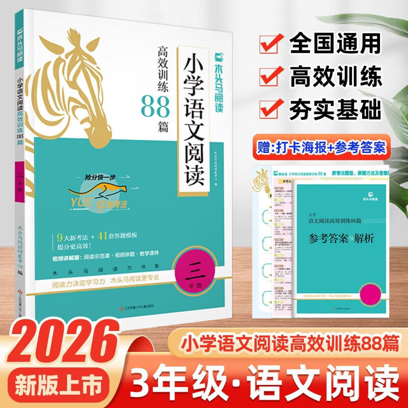 木头马2026版小学语文英语高效训练88篇 一二三四五六年级上下册 三年级 语文阅读高效训练