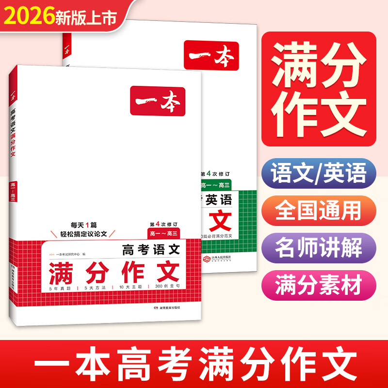2026一本高考满分作文大全语文+英语【共2册】高中生英语文满分作文议论文优秀作文素材大全写作技巧方法指导高一二三满分范文万能模板